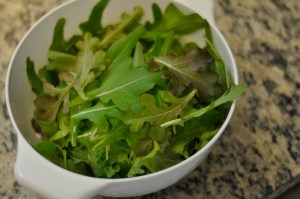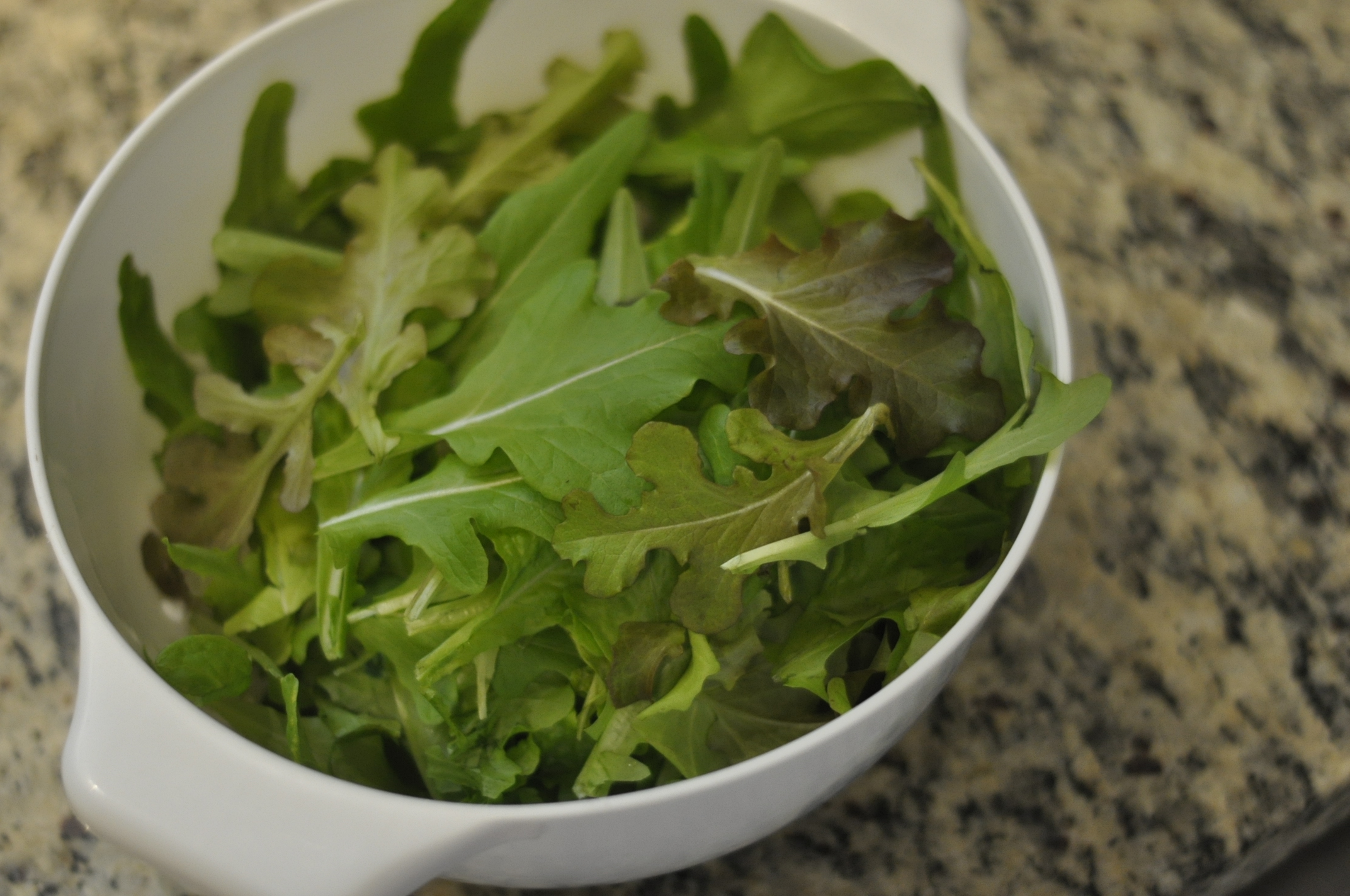 This is the most local of salads – picked from my garden 10 minutes before I was about to serve, and hand washed on ensure there was no dirt or bugs. I dressed it with a little of this vinaigarette dressing and it was a huge hit!