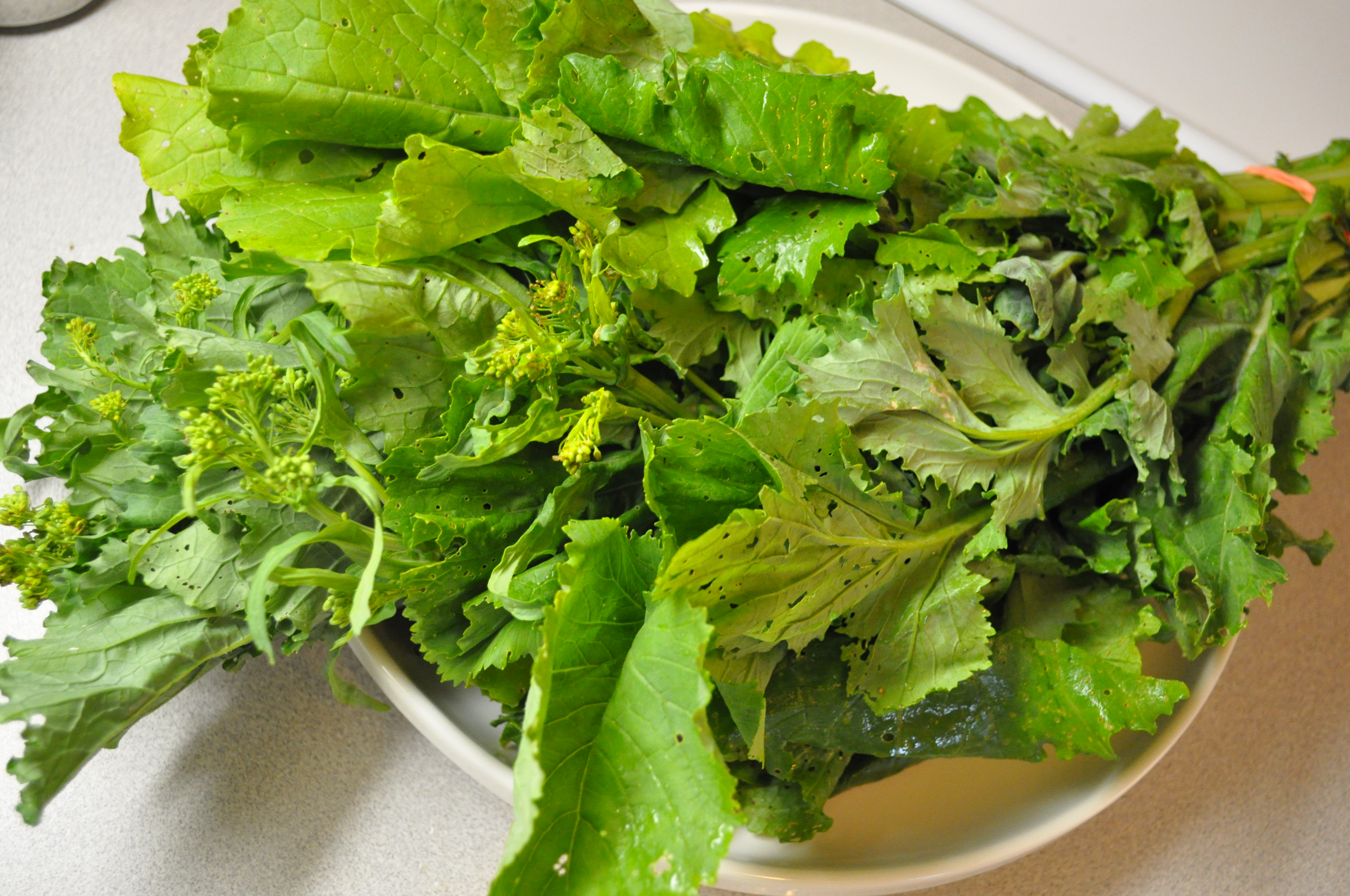 Potomac Vegetable Farms’ summer CSA has finally started! Hooray for delicious vegetables. My husband and I signed up for the Regular share (feeds 4 or 2 people who eat a lot of veggies). Every week PVF includes a description and photo of the contents of our share. While I pride myself in being an experienced CSA member, I must admit that I had a hard time identifying the broccoli raab – it looks so much different than the grocery store variety.
