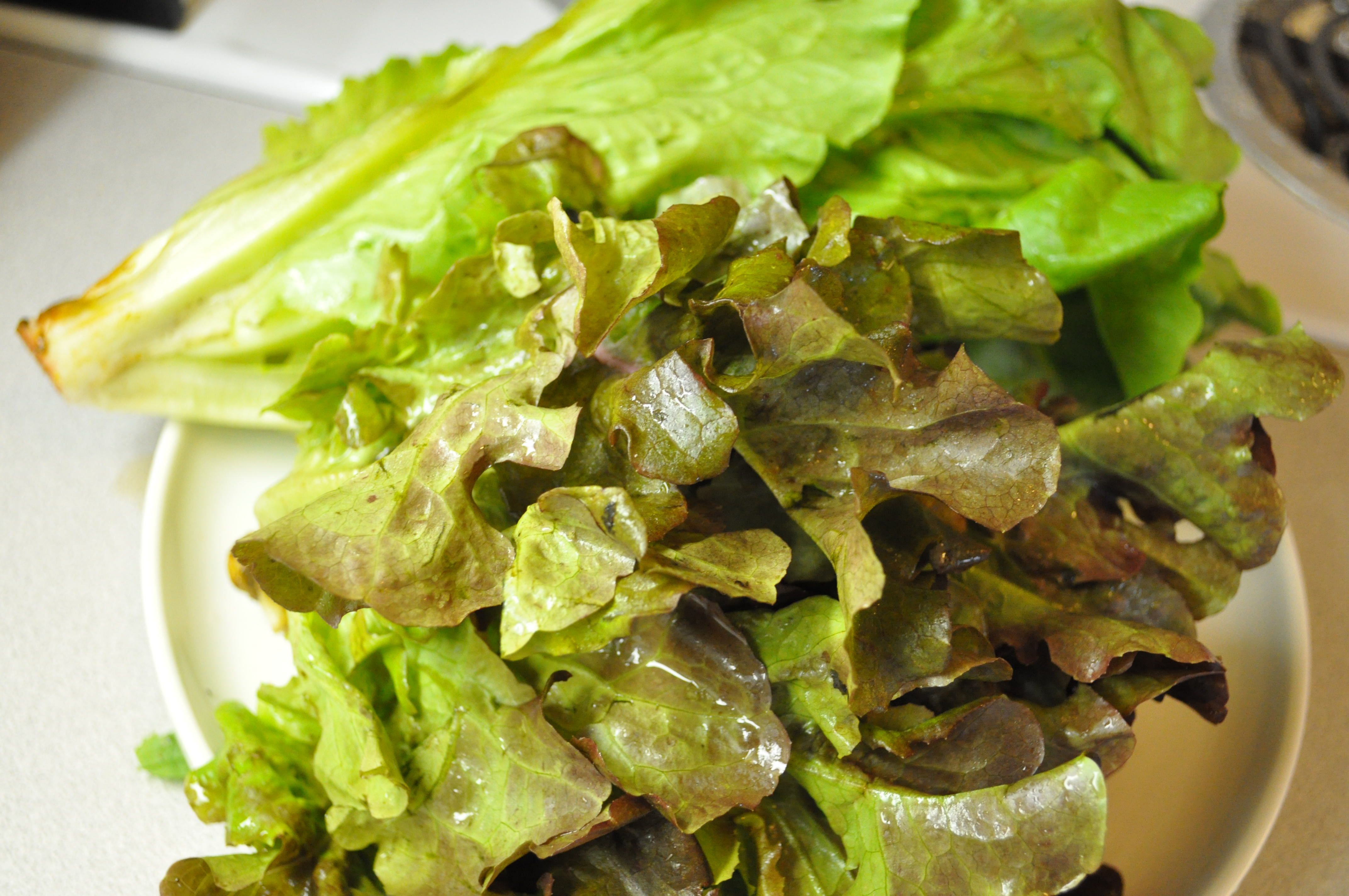 Last night I made Mexican Pizza with zucchini, onions, and garlic curls (check back soon for the recipe) and a simple salad with red leaf lettuce, sweet peas (removed the peas from the shells, as they were a little tough), cherry tomatoes (from Star Hollow Farm), and a lime vinaigrette (check back soon for the recipe). This was my first time making Mexican Pizza – it was quite yummy!